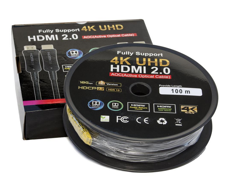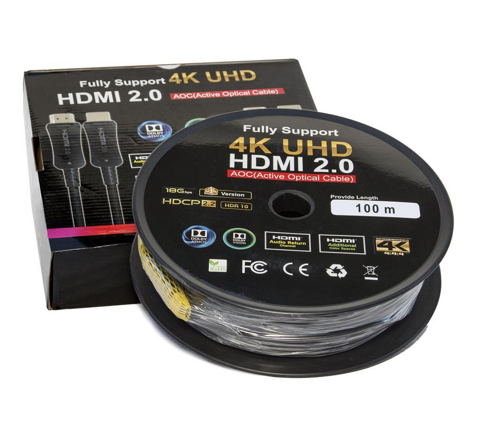 Traditional copper HDMI cables experience signal degradation over long distances. In contrast, the 100m Active Fiber Optic HDMI Cable offers:
