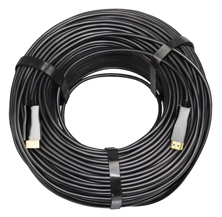 Traditional copper HDMI cables experience signal degradation over long distances. In contrast, the 50m Active Fiber Optic HDMI Cable offers: