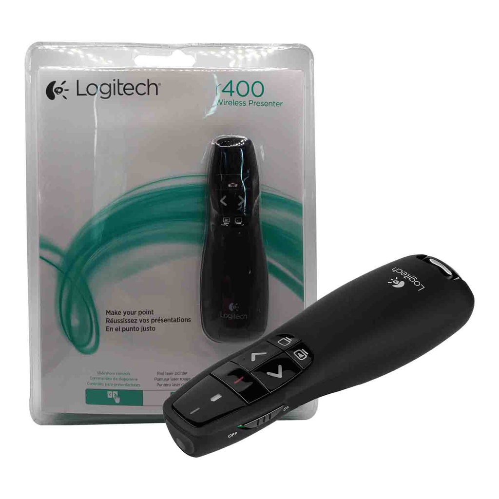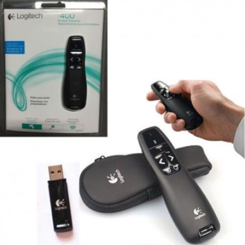 The Logitech R400 Wireless Presenter includes a built-in red laser pointer, enabling presenters to highlight key information with precision.